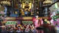 仏さまの前にて飾り納めをいたします。お焼香をあげてご供養頂き、その後お寺でお焚きあげ日まで保管させていただいています。