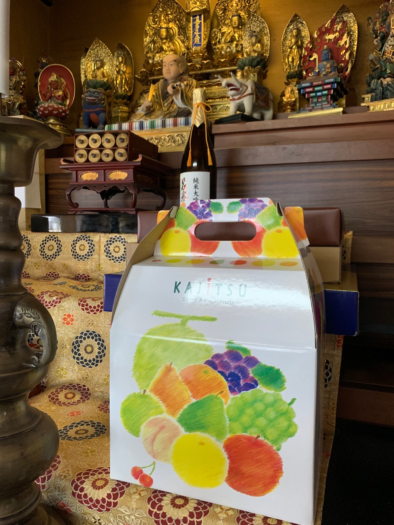 お盆のお参りでお供えを頂きました。お暑い中のお参りご苦労様でした、ありがとうございました(^^)