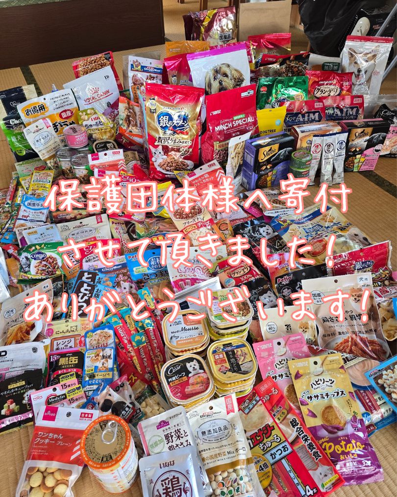 また、お堂にお供えしてあったものと合わせて皆さまの寄付して頂いたフードは保護団体さん達にお渡しいたしました。とても喜んでいました♪