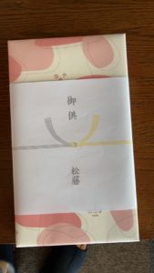 法要にて、お供えを賜り誠にありがとうございます。ご宝前に謹んでお供えいたしました。