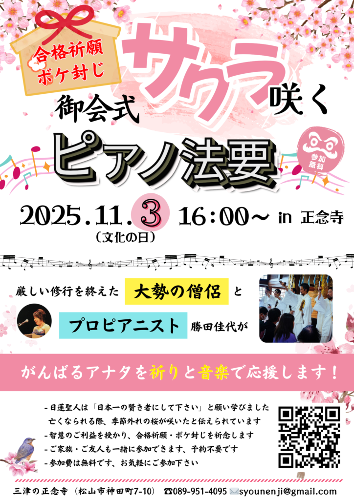『サクラ咲く御会式ピアノ法要』を開催します🎹✨
