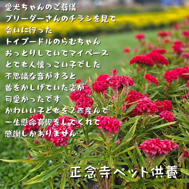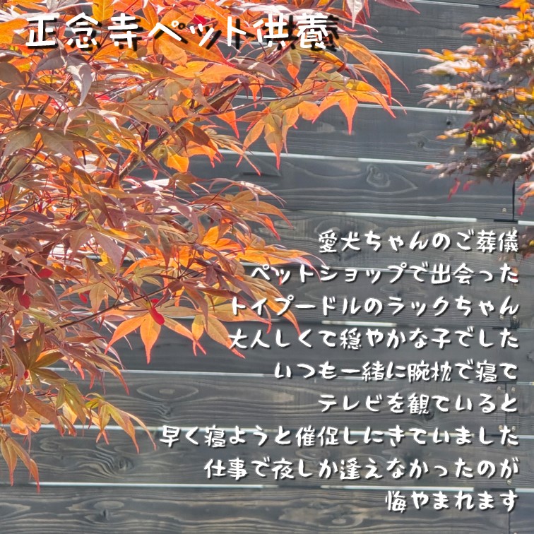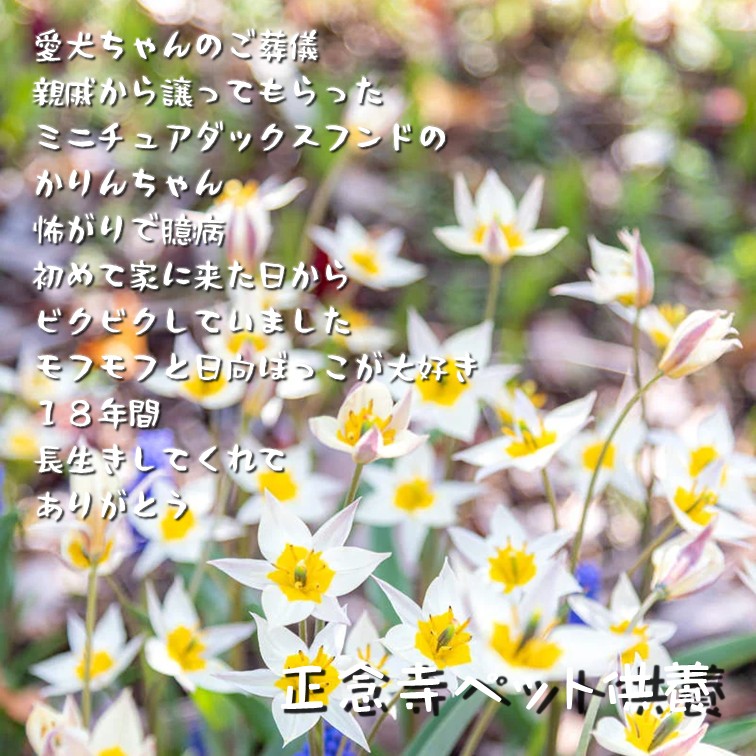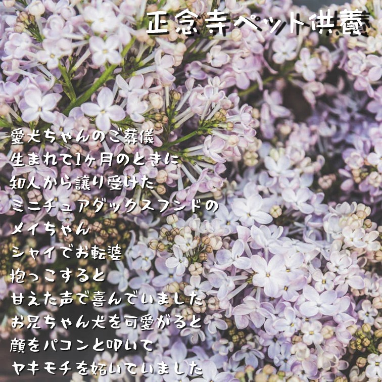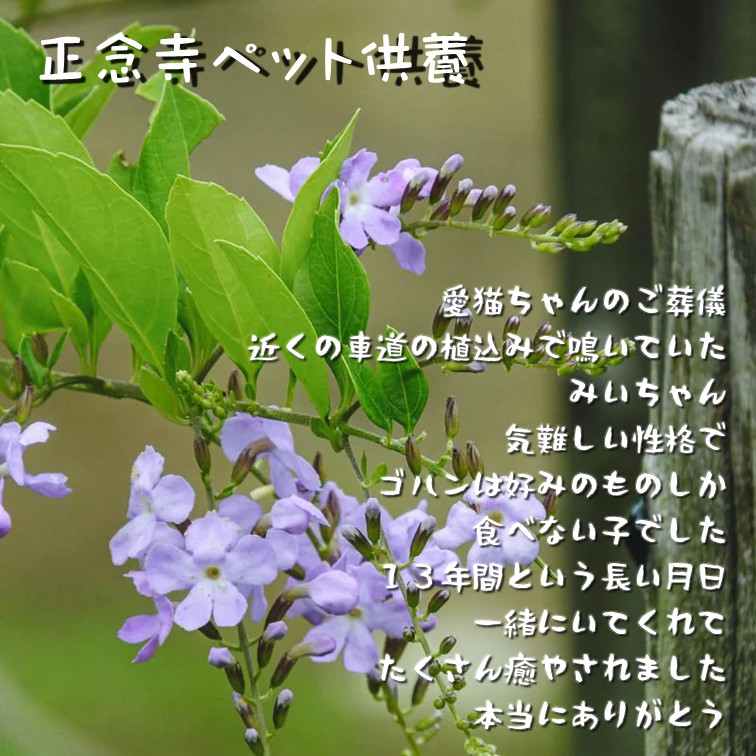 七回忌までは法要のご案内と命日の通知をいたします。また各お彼岸の中日には、動物慰霊祭ペット供養会を行っています。その際、新仏のペットにはお寺のほうで塔婆を立てて丁重にご供養をさせていただいております。
