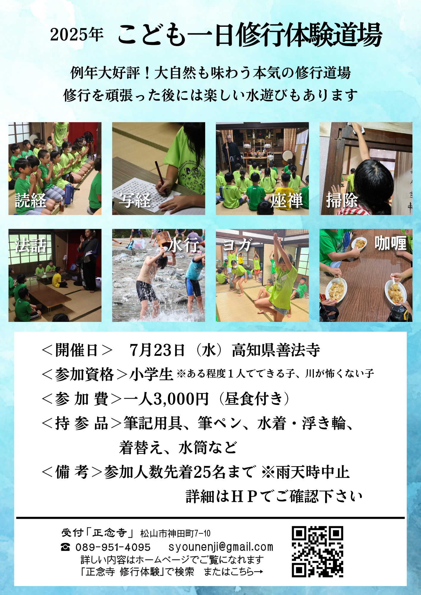 <持 参 品>水筒、着替え、虫除けスプレー、細い筆ペン、水着、サンダル、ぞうきん、ライフジャケット(必要な子は)
