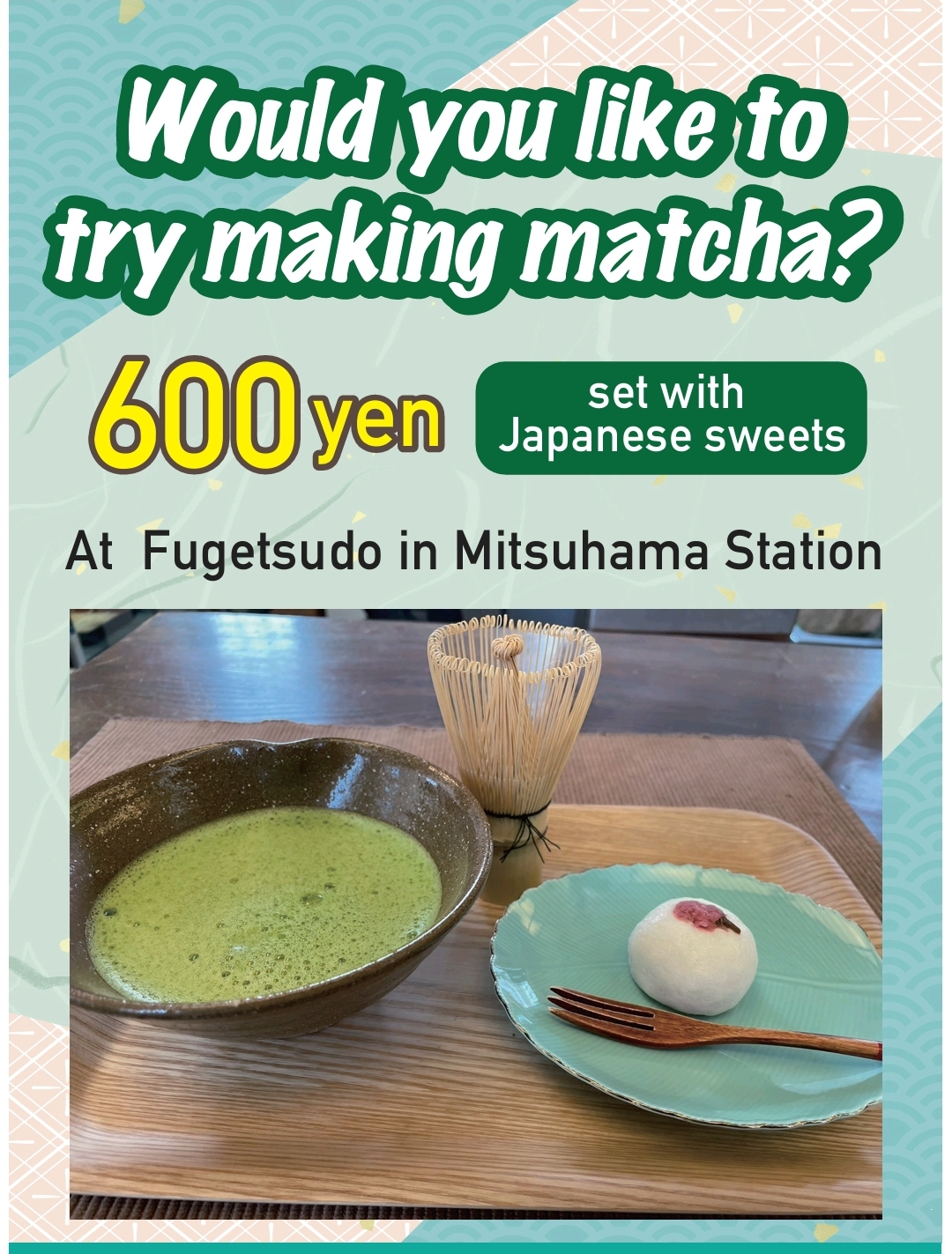 Enjoy an authentic cup of matcha tea while surrounded by sakura and the gentle breeze of spring.